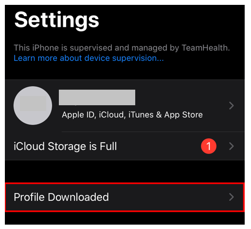 Step 16: From the “Settings” menu, select Profile Downloaded.