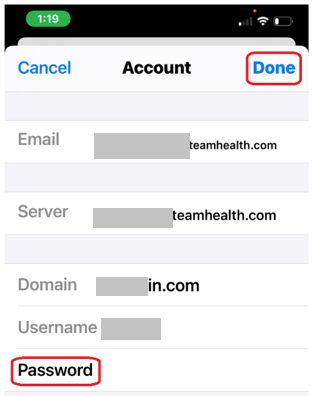 Step 20: Under “Account”, enter your TeamHealth Password, and choose Done.