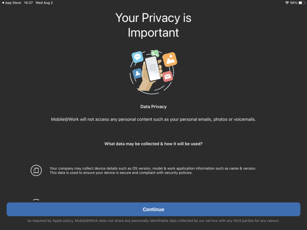 Step 9: Review the Privacy Statement and tap Continue.