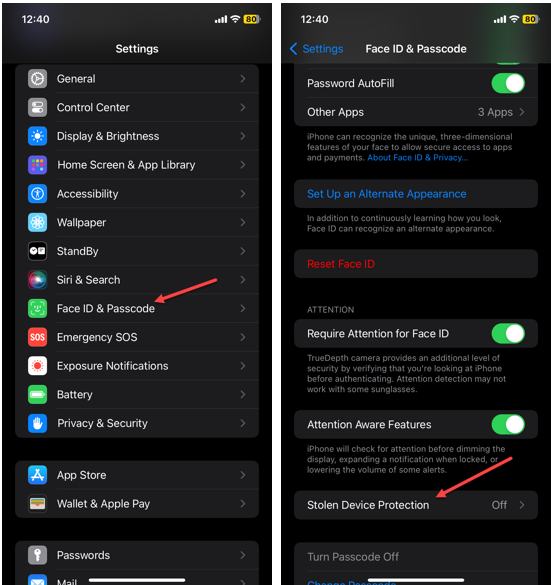 If you disabled Stolen Device Protection in Step 7, you can re-enable it now
